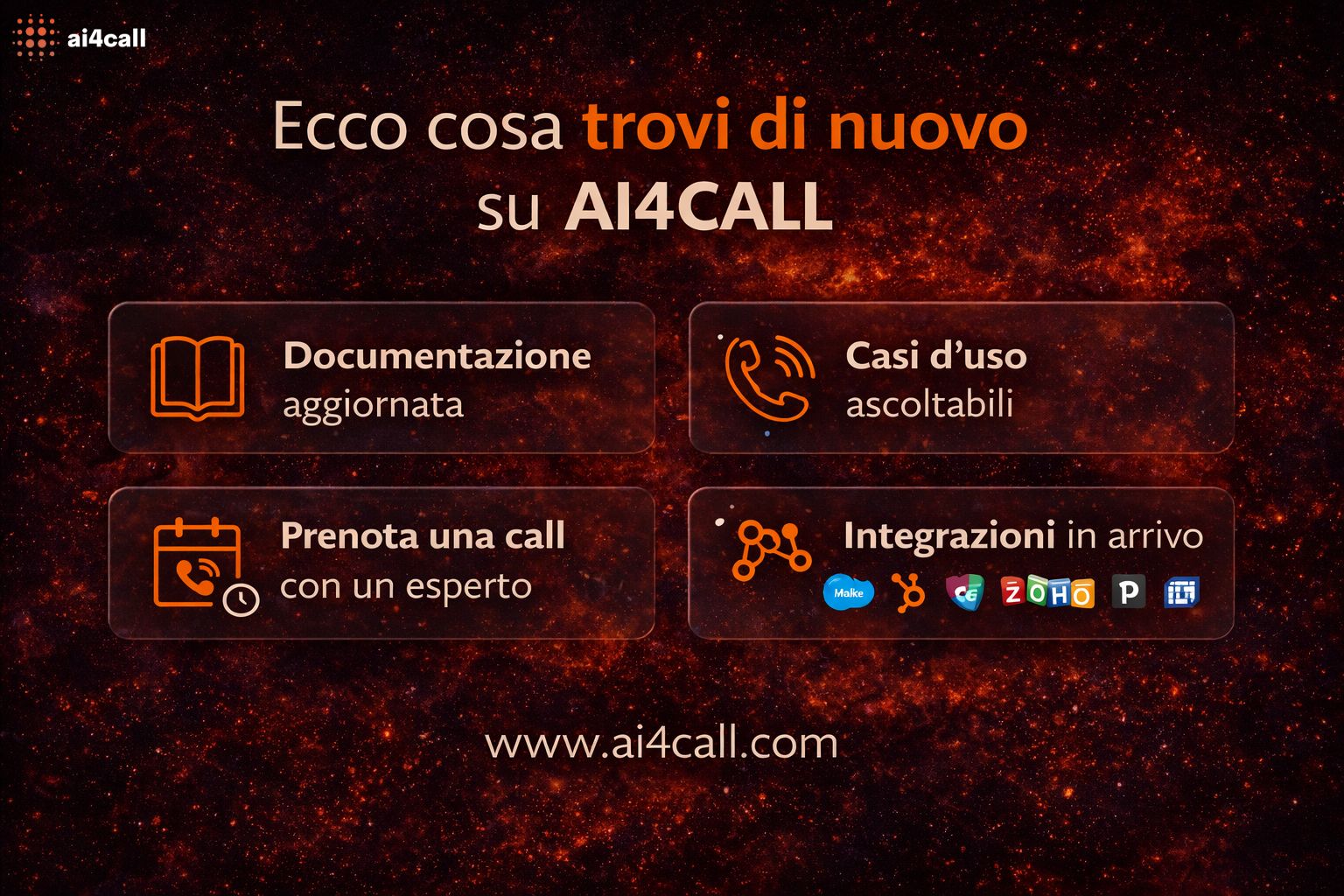 Chi arriva su AI4CALL oggi non cerca solo una descrizione del prodotto, ma risposte concrete: come funziona un Agent AI, che tipo di integrazioni sono disponibili, cosa è già pronto all’uso e cosa arriverà a breve. Il nuovo sito è stato costruito esattamente con questo obiettivo.