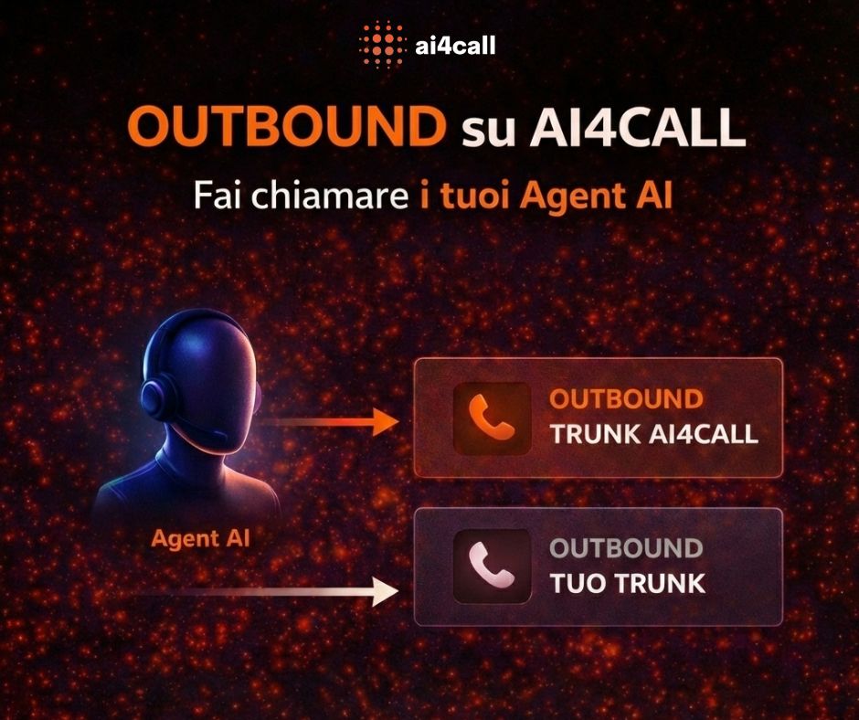 La funzionalità Outbound di AI4CALL è una delle più utili quando vuoi passare dalla teoria alla pratica: ti permette di testare davvero un Agent AI, misurare la qualità della conversazione e scegliere se far uscire le chiamate con numerazione AI4CALL o tramite il tuo centralino.