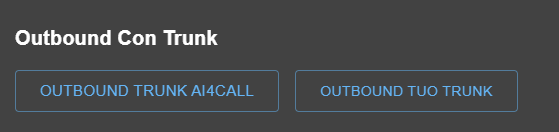 OUTBOUND TRUNK AI4CALL: È la modalità più semplice: usi la numerazione fornita da AI4CALL associata a quell’assistente.